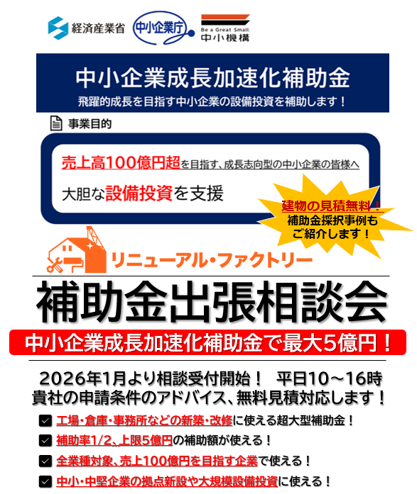 【リニューアル・ファクトリー】補助金出張相談会
